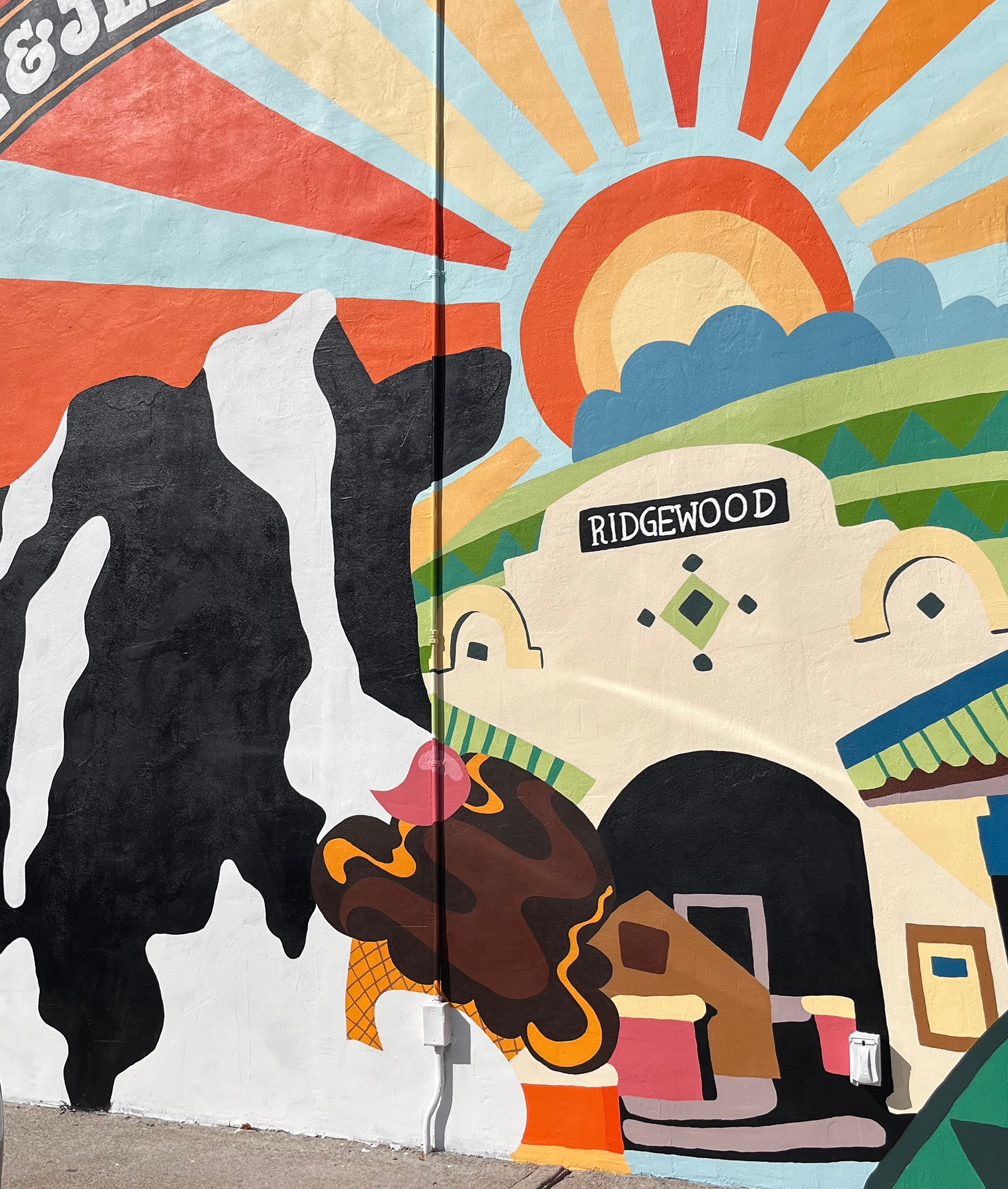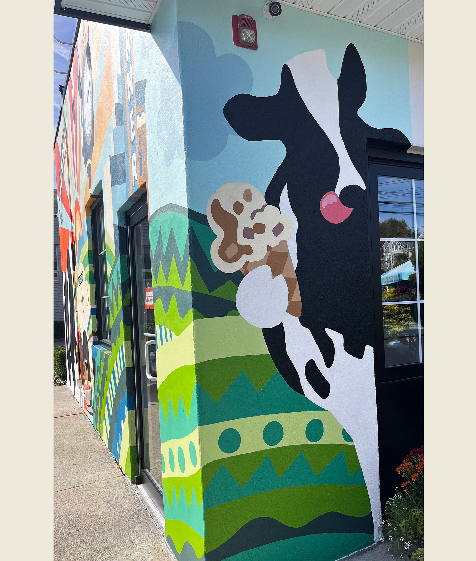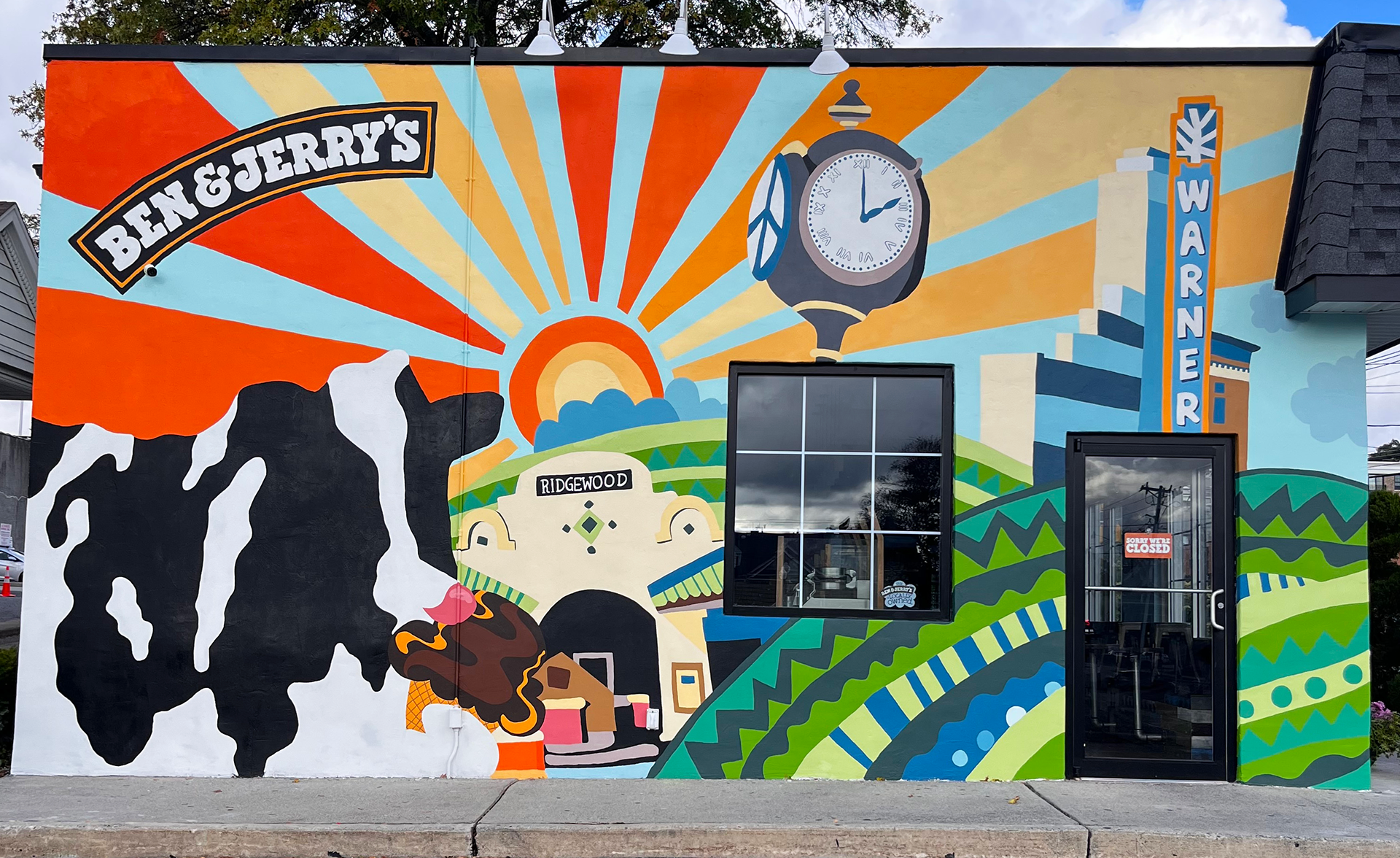 I worked with Ben & Jerry's to implement a company designed mural onto their Ridgewood shop. The mural was designed to be a paint by number to invite the community to come and help paint the mural. I worked to sketch the design onto the wall, prep the paint, and assist customers with their contributions to the mural. After the community day I then worked on the mural to finish higher up areas and polish any mistakes.